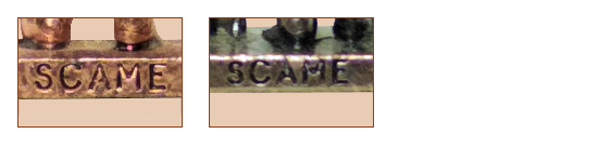 Značka SCAME se objevuje pouze na kovových figurkách a modelech, Scame-Mastaf na BPZ. Materiál „kováků“ a podrobnost reliéfu vyžaduje technologii tlakového lití, proto je specializace na tuto část produkce zřejmá. U BPZ už to tak jasné není (viz Giodi)